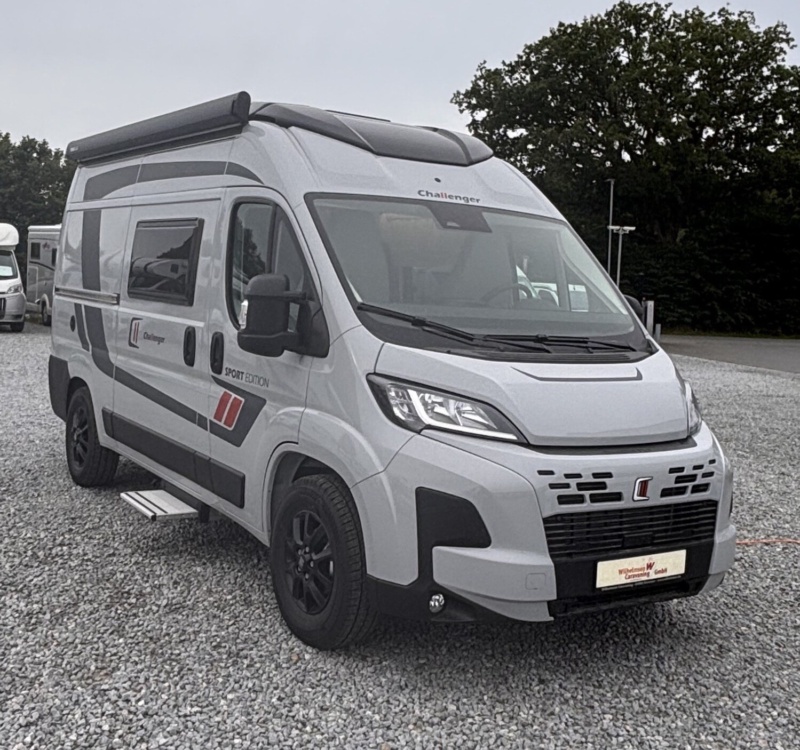 - Serienausstattung Van Sport Edition (Ausstellfenster am Heck, ECO Paket: Start/Stop-System inkl. smarter Lichtmaschine, ESP, Elektrische Rückspiegel mit Abtau-Automatik, Elektrische Trittstufe, Erweiterung für Esstisch, Fahrer- und Beifahrerairbag, Fenster - Doppelverglasung mit Kombirollos, Fix and Go, Hill Descent control, Höhenverstellbare Drehsitze mit zwei Armlehnen, Klimaanlage Fahrerhaus manuell, TV-Vorbereitung, Tempomat + Geschwindigkeitsbegrenzer, Traction +, USB-Anschluss/USB-C, Vorbereitung Solarpanel, Vorverkabelung Rückfahrkamera, Waschraum mit Fenster, Außenhalterung für Tisch, Panorama-Dachhaube (oder 2 Dachhauben), 16? Alufelgen schwarz, Dieselheizung während der Fahrt benutzbar, Nebelscheinwerfer, Schonbezüge für Fahrerhaussitze, Stoßstange in Wagenfarbe lackiert, offenes Fahrerhaus, verstärkte Isolierung "VPS", Campovolo-grau, Kleiderschrank)